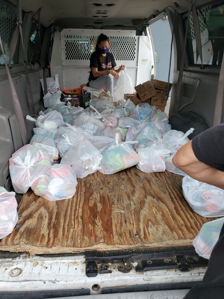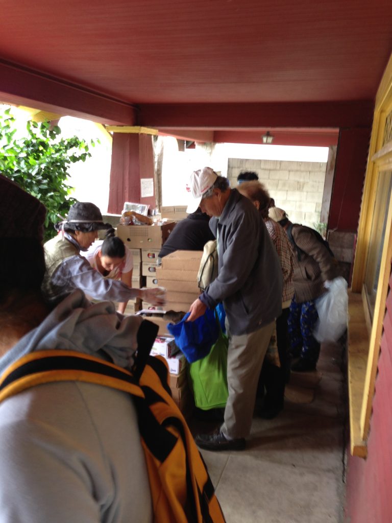 For the last 13 years, we have been running a feeding program from our Los Angeles Jagriti grounds. Ananda Marga signed a contract with the Government representatives of the Los Angeles Regional Foodbank. This institution serves 2 million meals every week and moves 100 tones of food every day. We have signed up for the Federal assistance program, which helps low-income families and gives assistance to children, and the Senior program, also known as the brown bag program. We are serving 80 to 100 families on Thursdays and between 100 and 120 seniors every Friday with various foods, from produce to pastries, bread, canned foods, and frozen food. In all, we collected between four to six tons of food weekly, depending on the type of item. All in all, we have been serving 2000 people monthly from the neighborhood and different areas of Los Angeles, including Korea town, mid-city, Country club, and Wilshire Blvd. areas, also random areas further away.