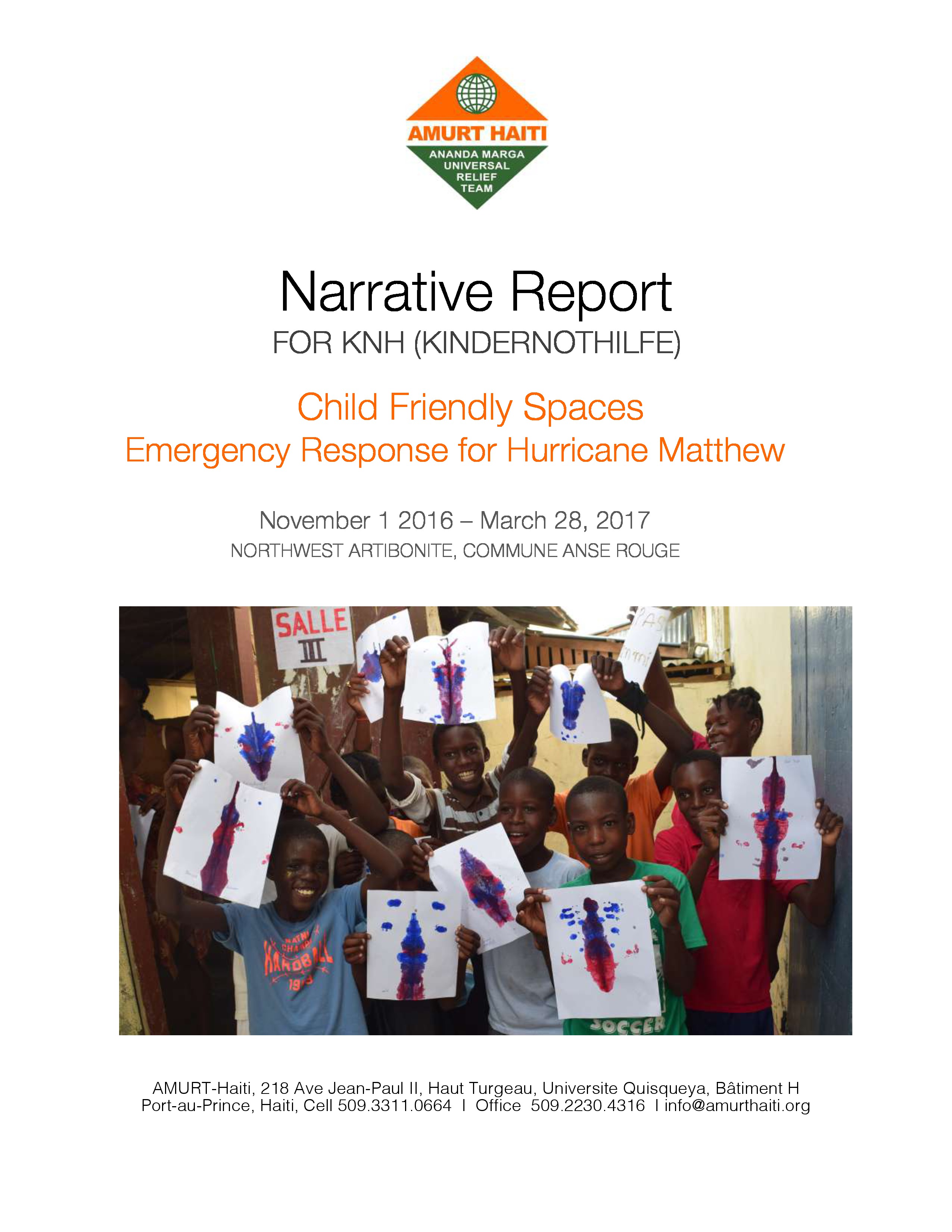 Here is the 2017 report from Amurt and Amurtel in Haiti relative to the Child Friendly Spaces....