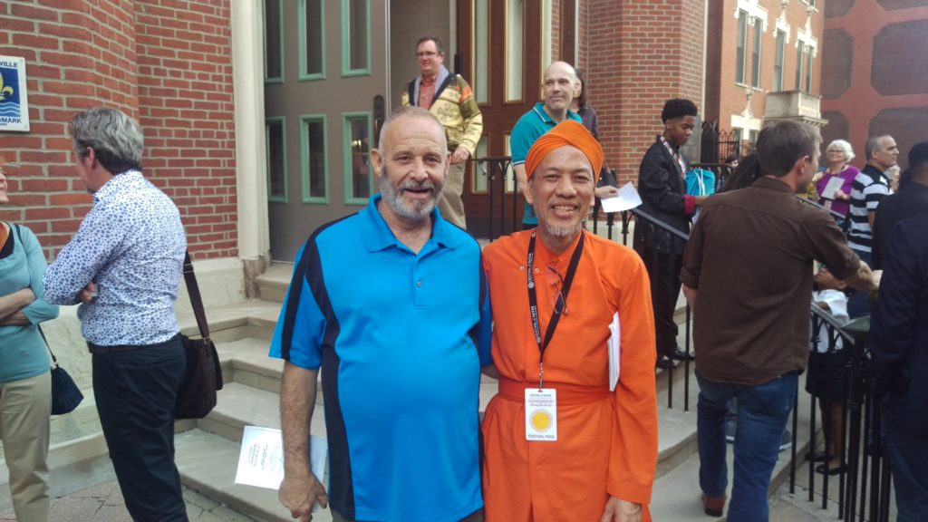 It was a wonderful interfaith gathering held in downtown Louisville, with about 400 participants from different religious faiths, spiritual and socially active groups. Brother Yatimana arranged for Ac. Advayananda Avt. to participate and represent Ananda Marga and PROUTist Universal. Many formal and personal interactions were made, most notable with a Bishop Emeritus of Cuba and his aides, and with Tibetan Buddhist monks and representatives of HH Dalai Lama. We attended a nationally-televised event at the Cathedral of the Assumption, with renowned broadcast journalist Ann Curry.