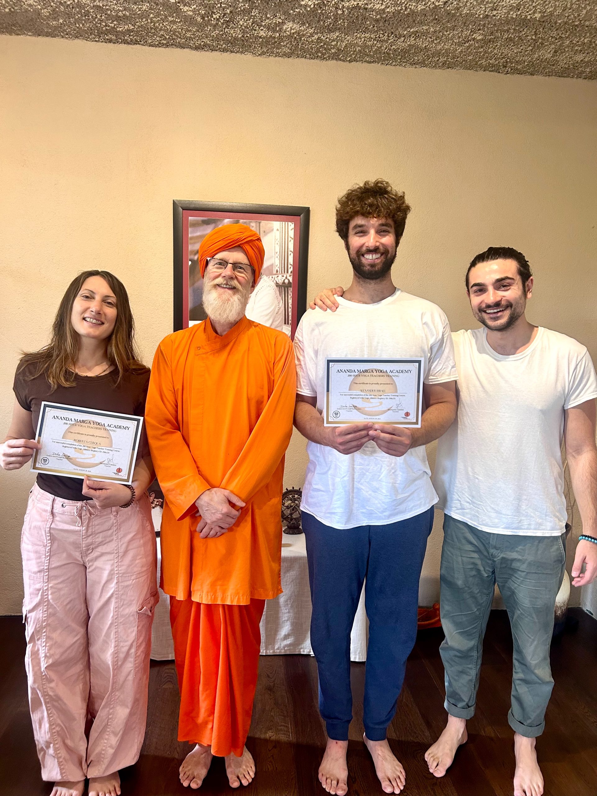 The course included yoga history, practical training in the eight limbs of Aṣṭāṅga Yoga, yoga philosophy (including Brahma Cakra), Neohumanism, and PROUT, as well as extensive instruction in āsanas and yoga anatomy. Dada is planning to offer similar training in the future. Those interested may contact him directly or visit his website: anandamayaashram.org.