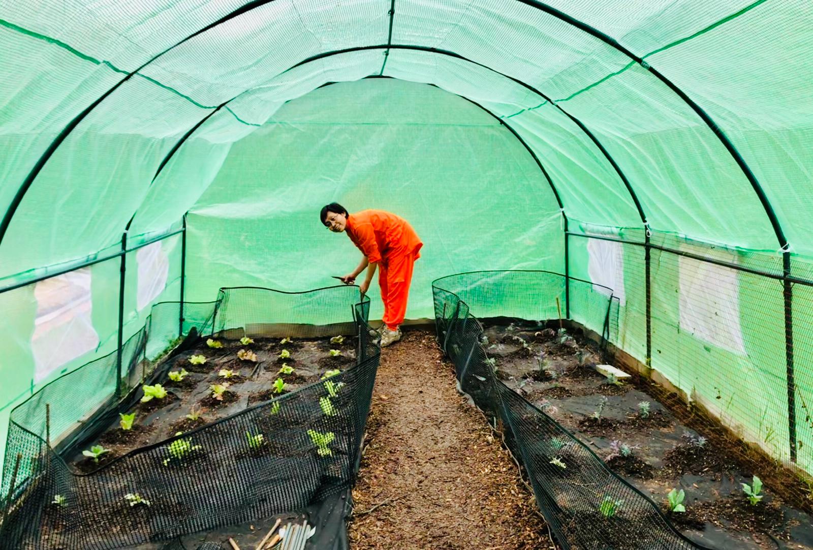 Ananda Dhiira is a beautiful Master Unit in Penn Valley, California. Avadhutika Ananda Acira Acarya is taking care of the Master Unit and has set up a greenhouse and is growing organic fruits and vegetables. She writes: “A month ago we started to prepare the soil and planting, and 2 months ago pruning the fruit trees… With care and love to the plants, now they showing good results. The lettuce and kales ???? are doing well and soon we can harvest. The fruit trees ( mulberry, figs, plum, olive, grapes) start giving fruits… What a blessing..”