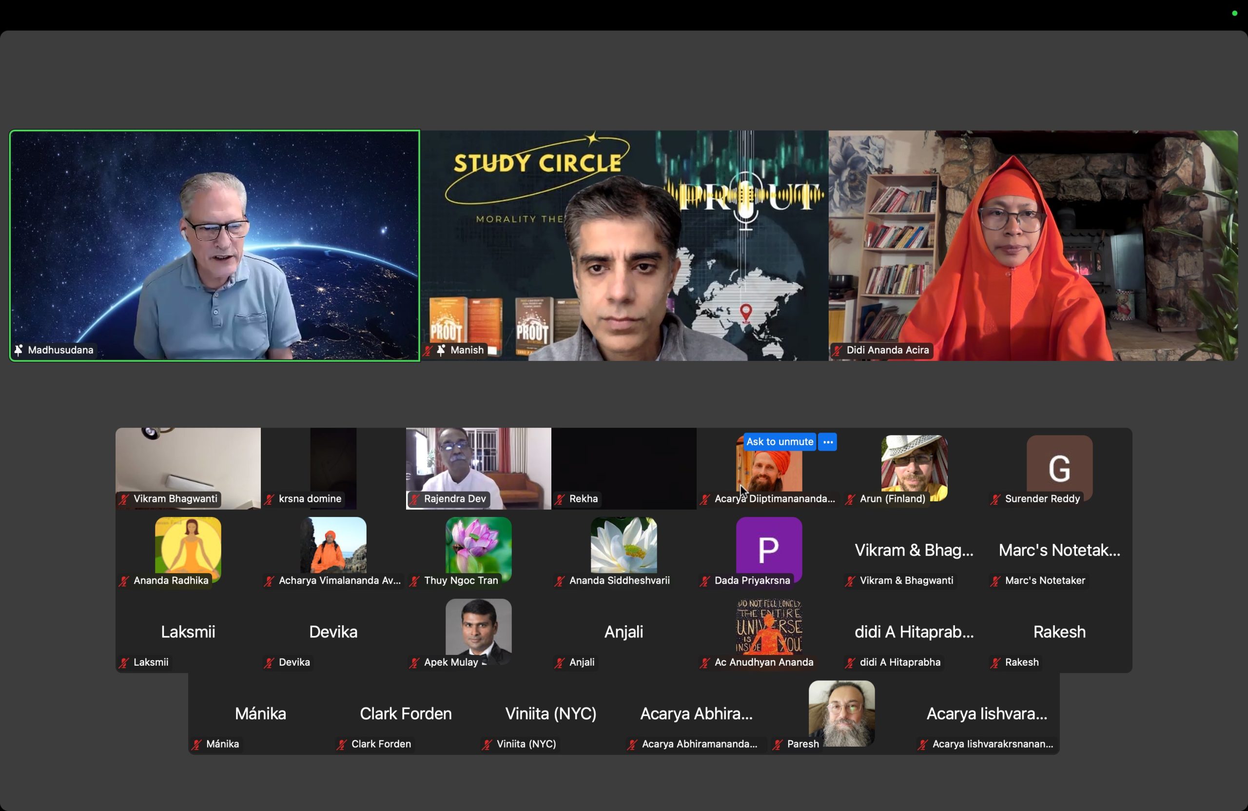 A special highlight of the Sunday program was the PROUT Study Group session, which brought together Margiis from the New York Sector and beyond. The PROUTist Study Group meets every Sunday morning at 8:30 a.m. (Eastern Time) on Zoom to study and discuss selected discourses by Shrii P. R. Sarkar. During the Online Spiritual Festival, participants had the privilege of joining the group to study Baba’s discourse Economic Democracy. Since regular members had pre-read the text, the session moved quickly into a rich and engaged discussion, exploring both the philosophical foundations and real-world applications of Baba’s economic vision.