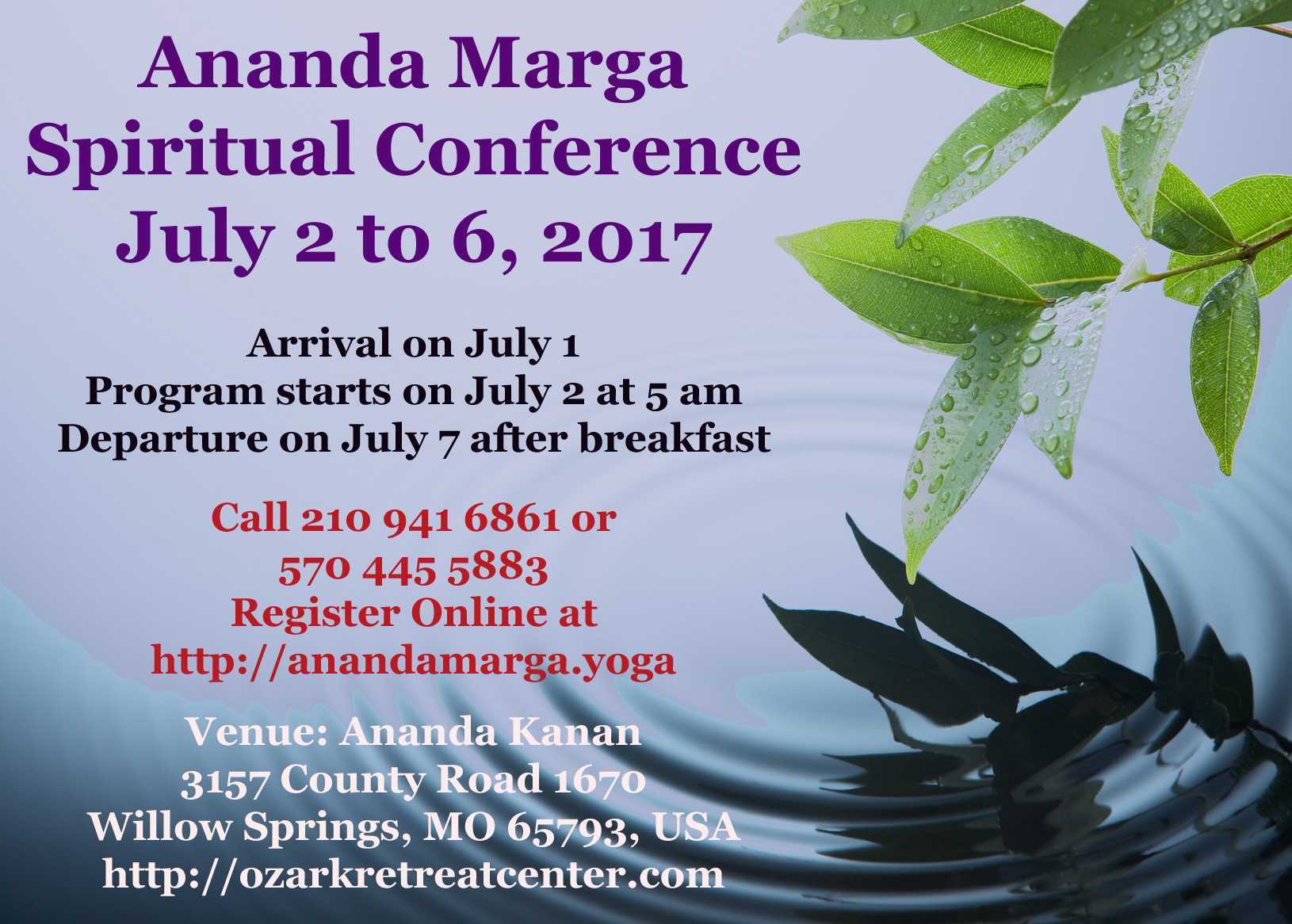Namaskar, Dear Brothers and Sisters! You are invited and welcome to participate in the annual summer conference at Ananda Kanan....