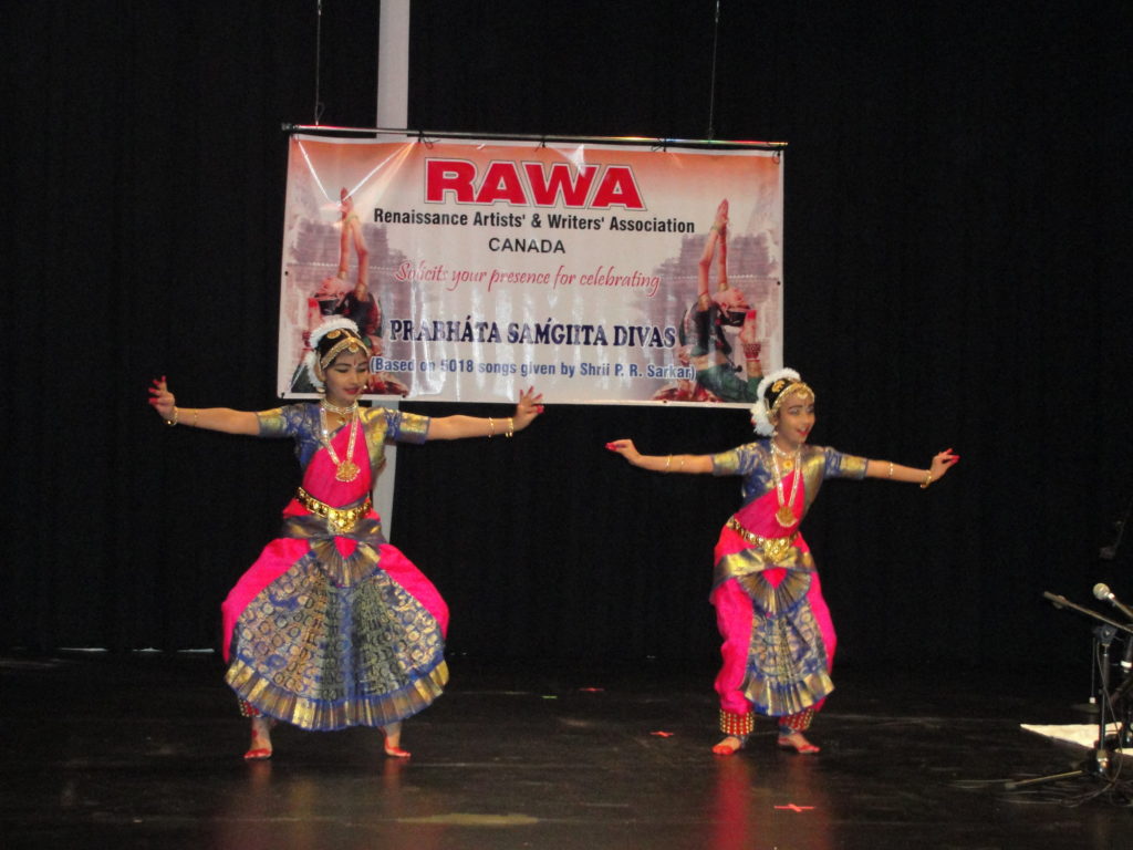 Girls of different ages performed Bharatnatyam Indian classical dance to Prabhata Samgiita songs. The quality of the dance performances was very high with most of the dancers having trained classical dance since early childhood.