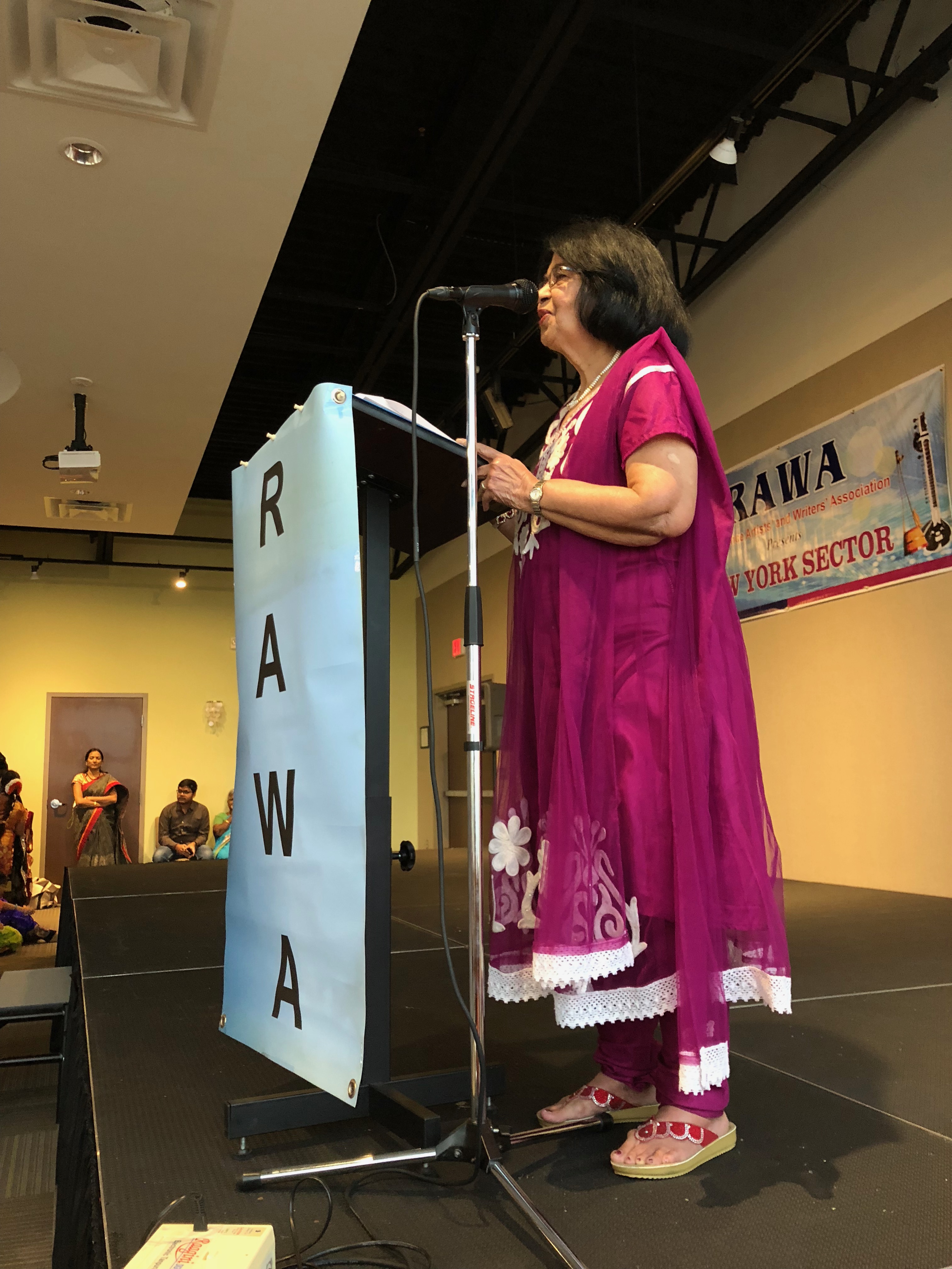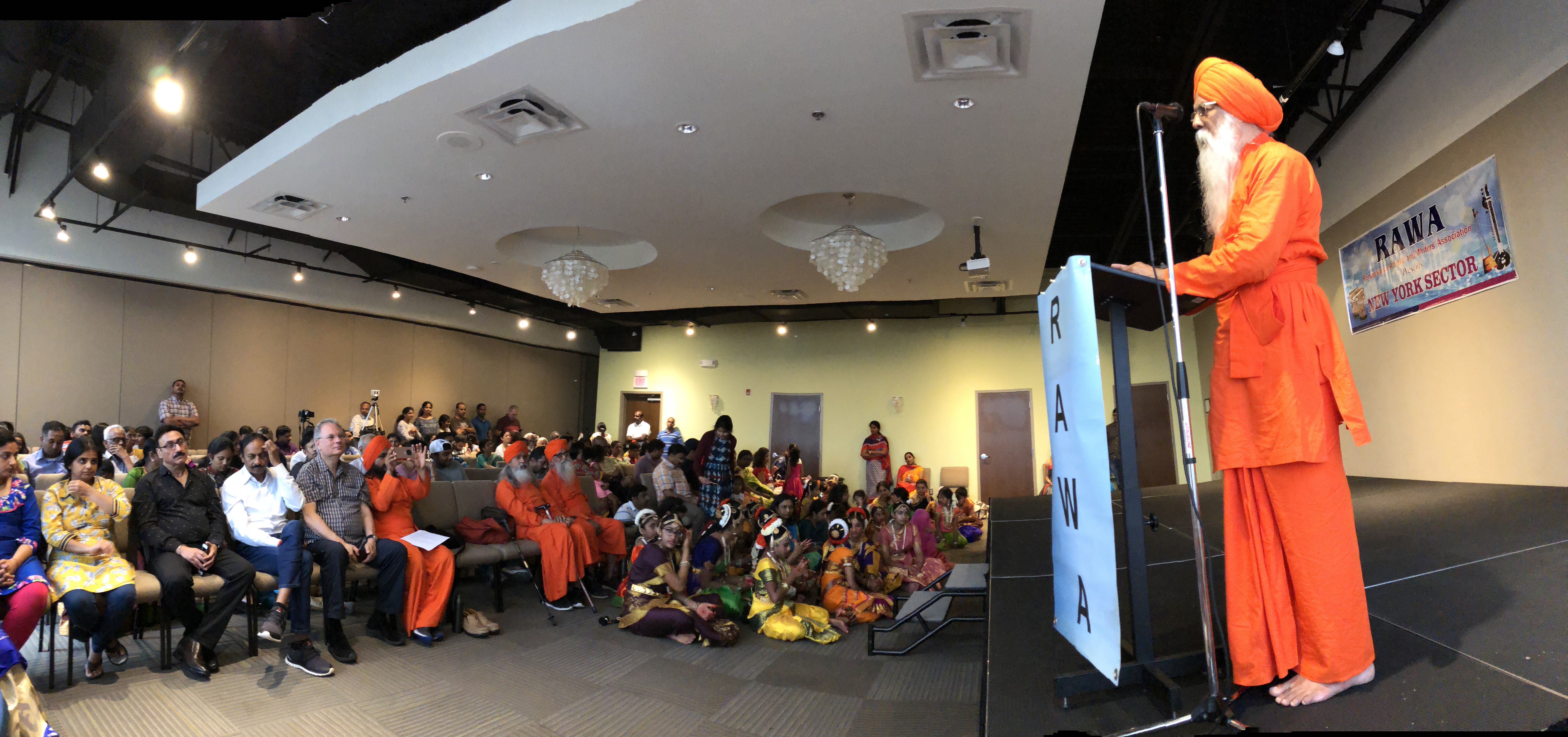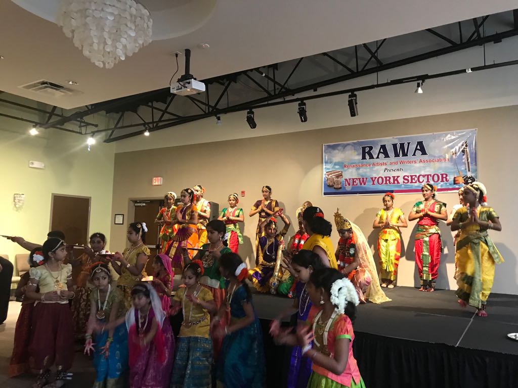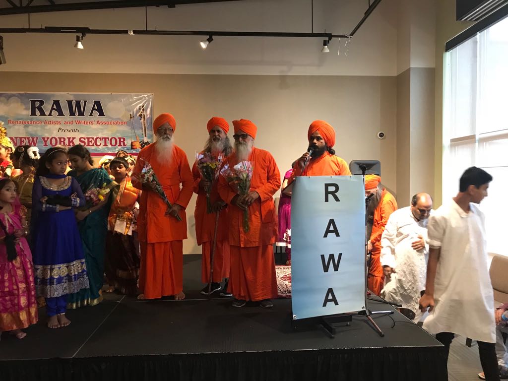 RAWA Cultural Program was held at Sterling, Virginia on Sunday, July 15, 2018, featuring Indian classical Bharatnatyam dance based on Prabhata Samgiita and Indian Bhajans. The RAWA program was organized by Sandeep Khanuja and his family, Bhagwanti Khushalani, and the Margiis in Virginia and Washington DC. The dancers were from a dance school in Sterling, Virginia lead by the renowned dancer and choreographer Lavanya Gantashala. The dancers were all students of the school and were from elementary school to graduate. Acarya Diiptimanananda Avadhuta, Bhagwanti, and Sandeep also sang Prabhata Samgiita with the accompaniment of tabla.