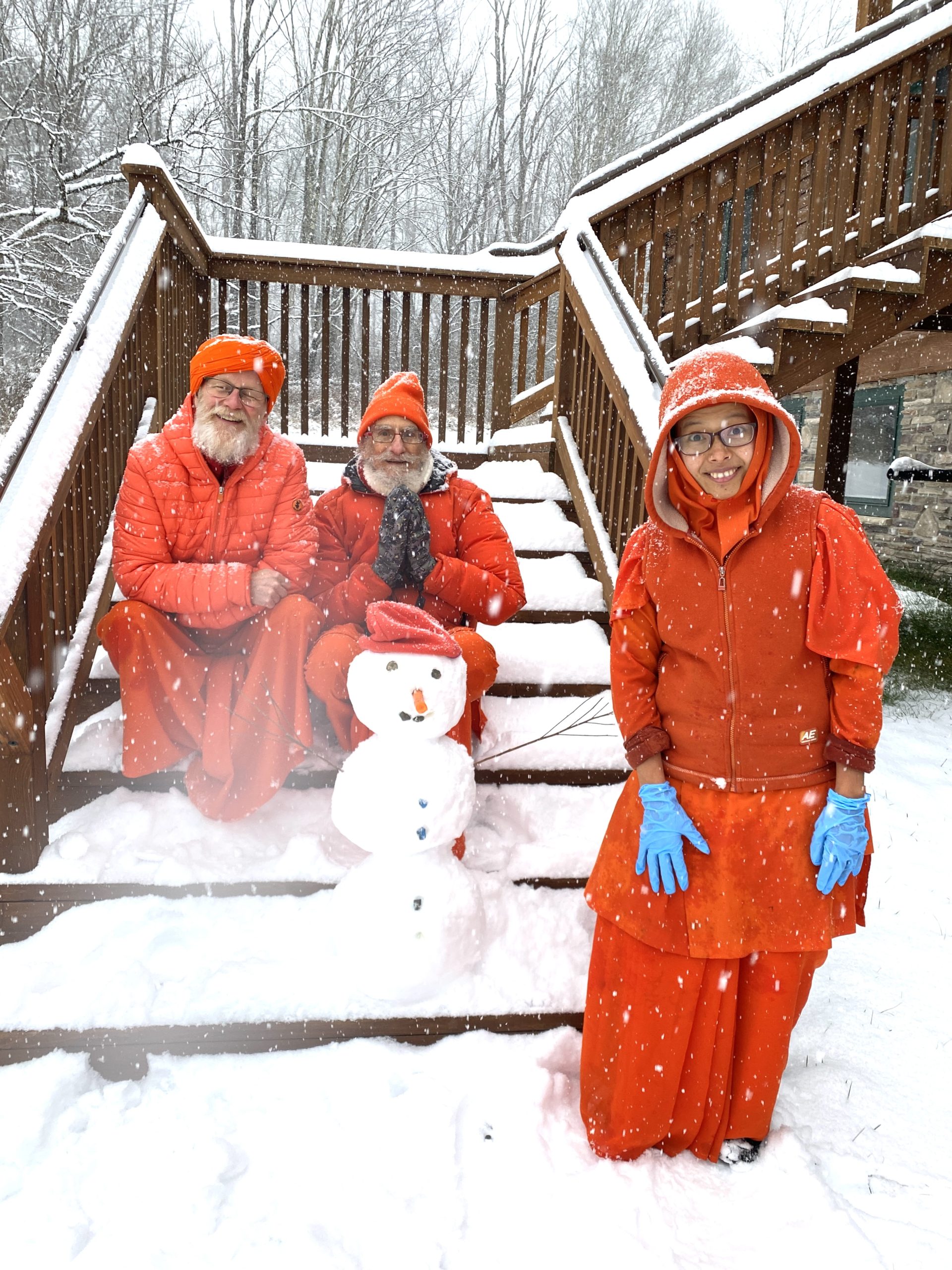During the program, snowfall gently covered the grounds of Ananda Vrati, bringing an added sense of joy and novelty. Since much of the New York Sector rarely experiences snow—aside from Canada and Denver—many of the Dadas and Didis delighted in playing outdoors and enjoying the winter atmosphere, adding a light and memorable touch to an otherwise deeply focused spiritual gathering.