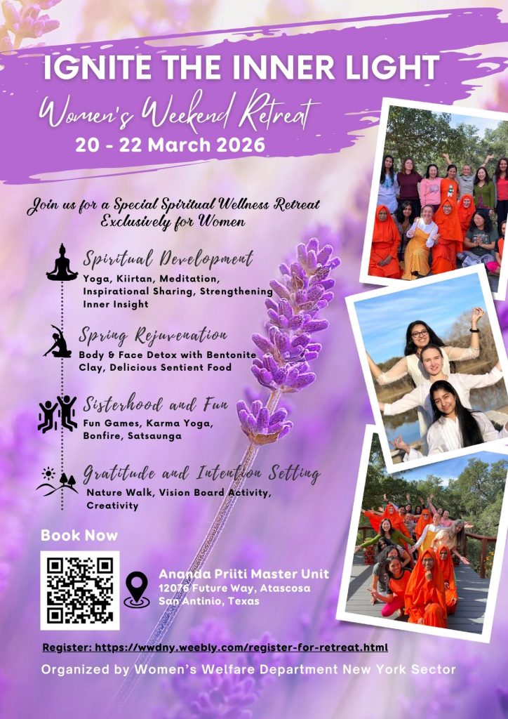 - Nature walks, bonfire, satsanga, and meaningful sisterhood time
